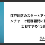 ホーム » コラム » 地域まとめ » 江戸川区のスタートアップ・ベンチャーで税務顧問に強い税理士おすすめ13選